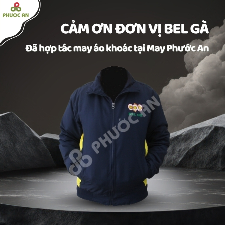 Bel Gà đã tin tưởng lựa chọn May Phước An để may áo khoác nỉ, đảm bảo chất lượng sản phẩm phù hợp với môi trường làm việc ngoài trời. Áo khoác Bel Gà được thiết kế dựa trên màu nhận diện thương hiệu đặc trưng, mang lại hình ảnh chuyên nghiệp và đồng bộ cho đội ngũ nhân viên tại trang trại.