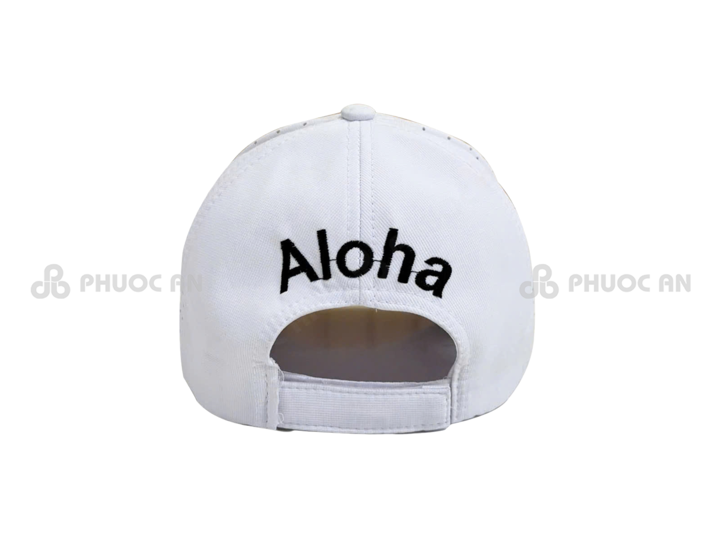 Điểm nổi bật của mẫu nón này là logo Aloha Hawaii được in hoặc thêu sắc nét, thể hiện tinh thần nhiệt huyết và vui tươi. May Phước An nhận thiết kế, may, in – thêu logo theo yêu cầu, đồng thời cho phép tùy chỉnh màu sắc, chất liệu, kiểu dáng để phù hợp với từng phong cách thương hiệu. Đây là lựa chọn lý tưởng cho đồng phục nhân viên, quà tặng sự kiện hoặc chương trình quảng bá hình ảnh doanh nghiệp.