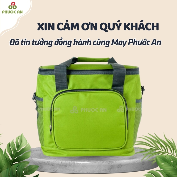 Sản phẩm được may từ vải chống thấm cao cấp, lớp lót bạc cách nhiệt giữ nhiệt tốt cho đồ ăn, thức uống, giúp duy trì độ tươi ngon trong nhiều giờ. May Phước An nhận may túi theo yêu cầu, in logo thương hiệu, tùy chỉnh kích thước – màu sắc – chất liệu, đáp ứng linh hoạt mọi mục đích sử dụng.